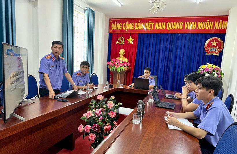 Quá trình báo cáo án, Kiểm sát viên của đơn vị VKSND Khu vực 8 đã ứng dụng trí tuệ nhân tạo trong hỗ trợ xây dựng sơ đồ tư duy và trình chiếu các tài liệu đã được số hóa trong vụ án để thực hiện báo cáo kết quả nghiên cứu đề xuất áp dụng biện pháp xử lý chuyển hướng đối với người chưa thành niên phạm tội.