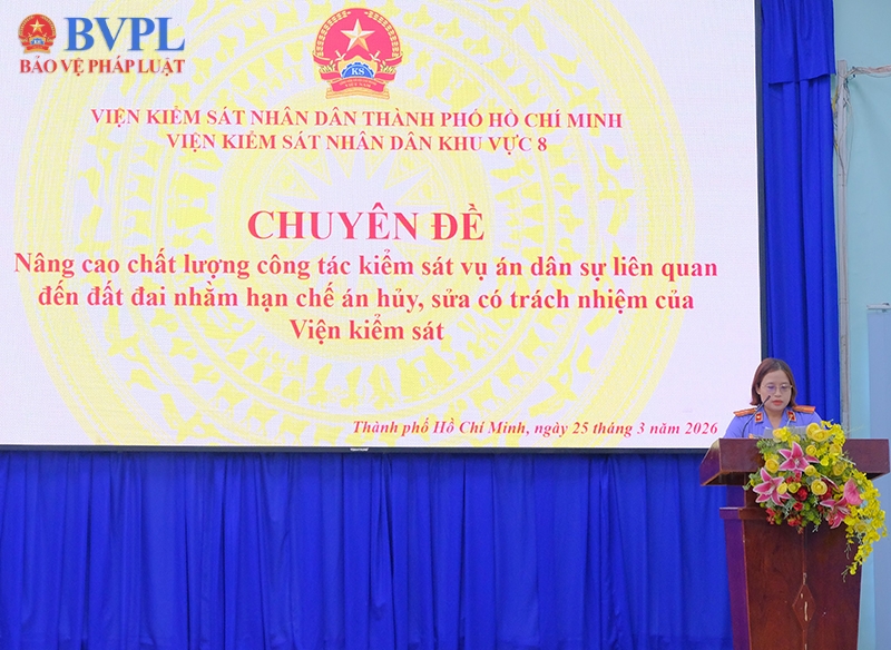 Tại Hội nghị, đồng chí Nguyễn Văn Nước - Phó Viện trưởng VKSND Khu vực 8 đã thông qua báo cáo tóm tắt chuyên đề. Trên cơ sở đó, các đại biểu đã trình bày tham luận, tập trung thảo luận, đề xuất nhiều giải pháp nhằm nâng cao chất lượng công tác kiểm sát các vụ án dân sự liên quan đến đất đai, hạn chế án hủy, sửa có trách nhiệm của Viện kiểm sát.