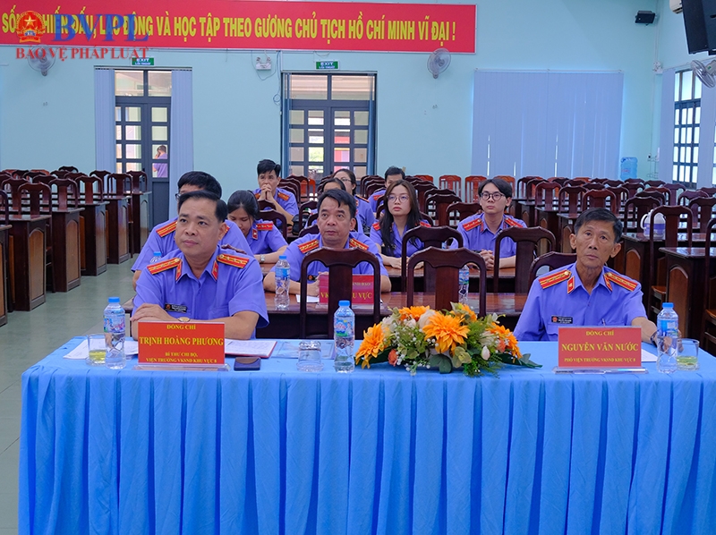 Về phía VKSND Khu vực 8 có đồng chí Trịnh Hoàng Phương - Bí thư Chi bộ, Viện trưởng VKSND Khu vực 8 - chủ trì Hội nghị; các đồng chí Phó Viện trưởng cùng toàn thể Kiểm sát viên, công chức thực hiện khâu công tác kiểm sát dân sự, hành chính tại đơn vị.