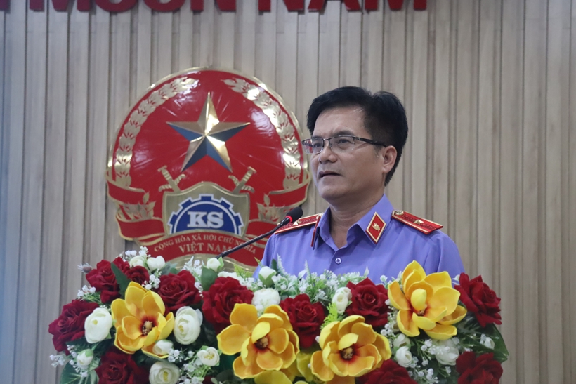 | Đ/c Phạm Trung Thuận, Tỉnh ủy viên, Viện trưởng VKSND tỉnh Đắk Lắk phát biểu khai mạc, đồng thời khẳng định quyết tâm của ngành KSND tỉnh trong việc đổi mới tư duy, phương thức làm việc, từng bước thích ứng với xu thế phát triển mạnh mẽ của khoa học, công nghệ, đặc biệt là trí tuệ nhân tạo trong giai đoạn hiện nay. |