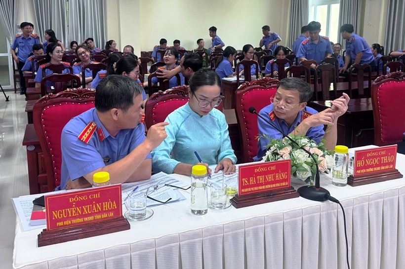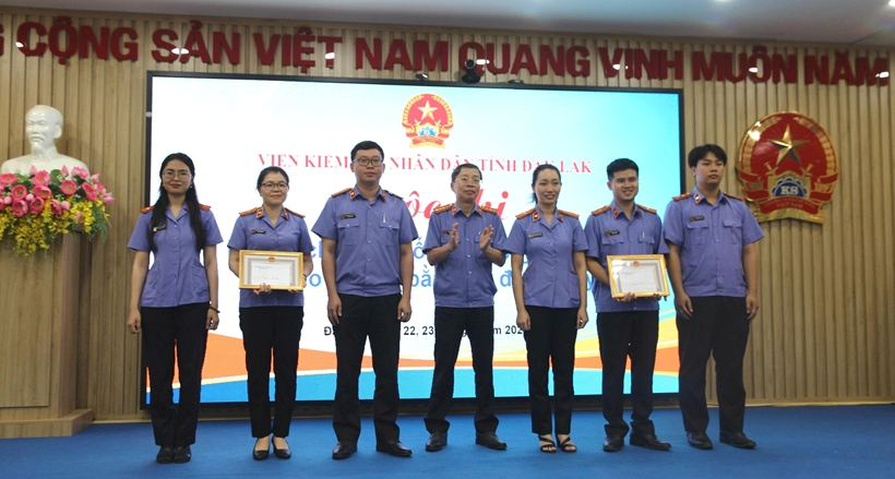 Tham gia chấm thi là Ban Giám khảo gồm các đồng chí Nguyễn Xuân Hòa, Hồ Ngọc Thảo, đều là Kiểm sát viên cao cấp, Phó Viện trưởng VKSND tỉnh và Tiến sĩ Hà Thị Như Hằng, Phó Giám đốc phụ trách Phân hiệu Trường Đại học Đông Á tại Đắk Lắk.