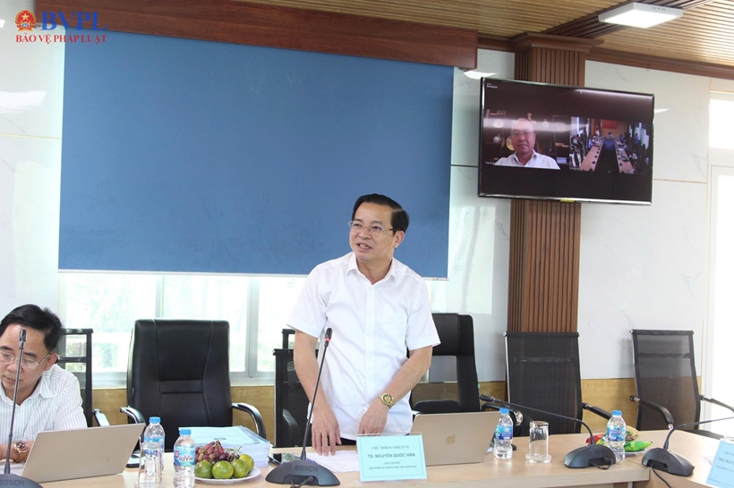 | Tiến sĩ Nguyễn Quốc Hân, Tỉnh ủy viên, Viện trưởng Viện kiểm sát nhân dân tỉnh Đồng Nai, chủ nhiệm đề tài báo cáo kết quả thực hiện đề tài. |