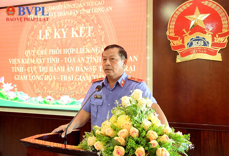 Phát biểu tại lễ ký kết, đồng chí Trương Văn Nghị - Viện trưởng VKSND tỉnh Long An đánh giá việc ký kết thành công các quy chế phối hợp lần này sẽ góp phần hiệu quả trong việc tăng cường hơn nữa sự phối hợp, thông tin để thực hiện tốt chức năng, nhiệm vụ của từng ngành, từng cơ quan, cũng như kịp thời tháo gỡ những khó khăn vướng mắc phát sinh trong thời gian vừa qua.
