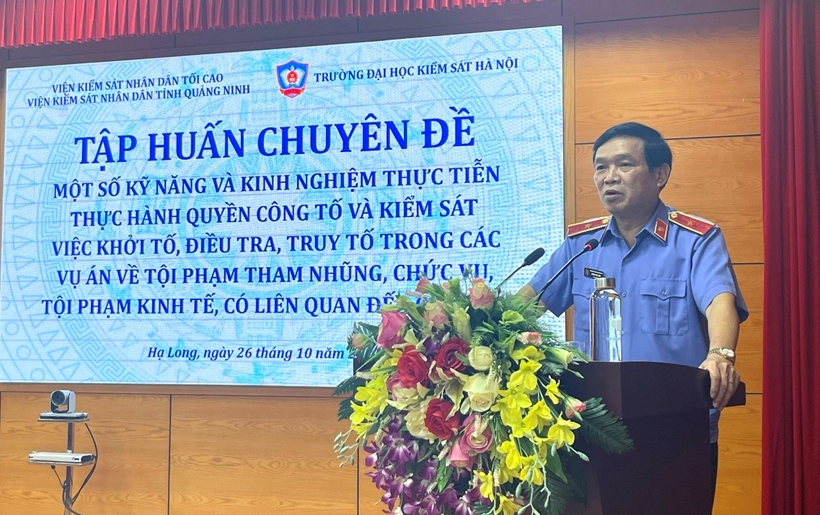 | Viện trưởng VKSND tỉnh Quảng Ninh phát biểu tại lớp tập huấn |