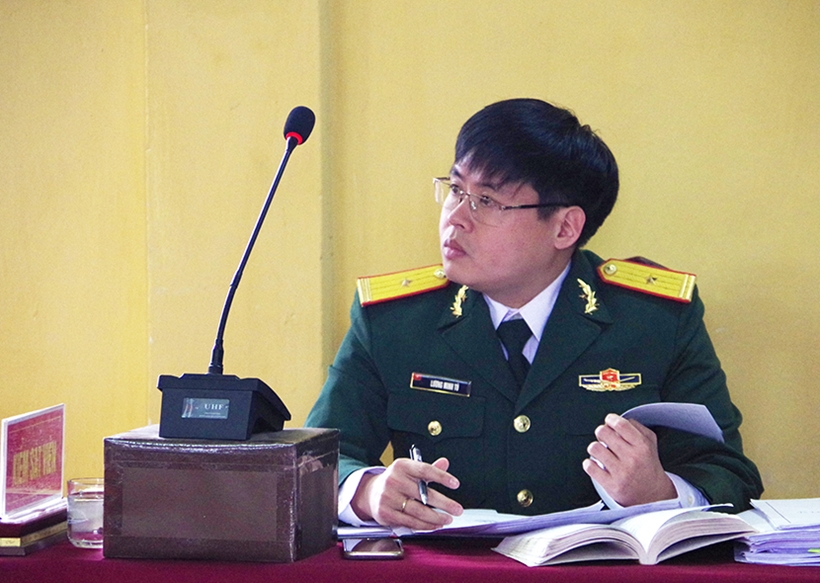 | Thiếu tá Lương Minh Tú - Viện trưởng VKSQS khu vực 22 thực hành quyền công tố và kiểm sát xét xử tại phiên toà. |