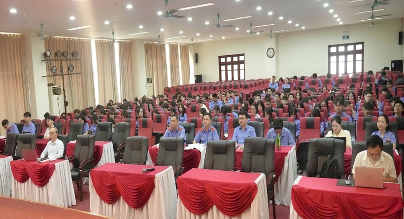 | Điểm cầu trung tâm tại Hội trường xét xử TAND khu vực 1 kết nối trực tuyến với điểm cầu VKSND khu vực 1 và Trường Đại học Kiểm sát. |