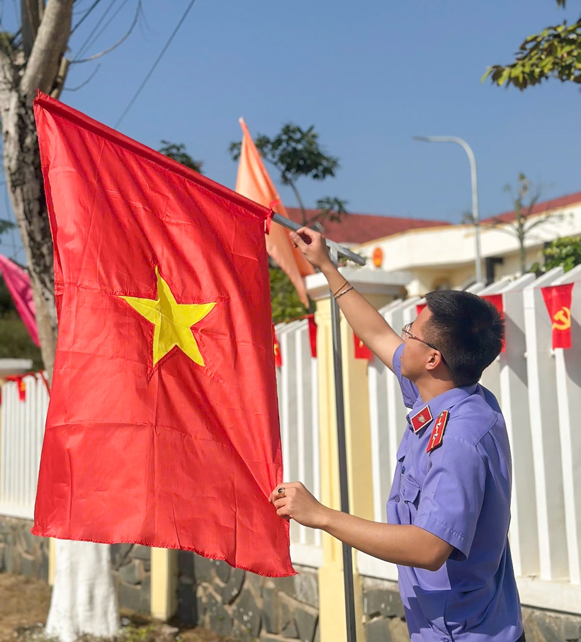 Chi đoàn VKSND khu vực 10, TP Đà Nẵng treo cờ chào mừng Đại hội XIV của Đảng