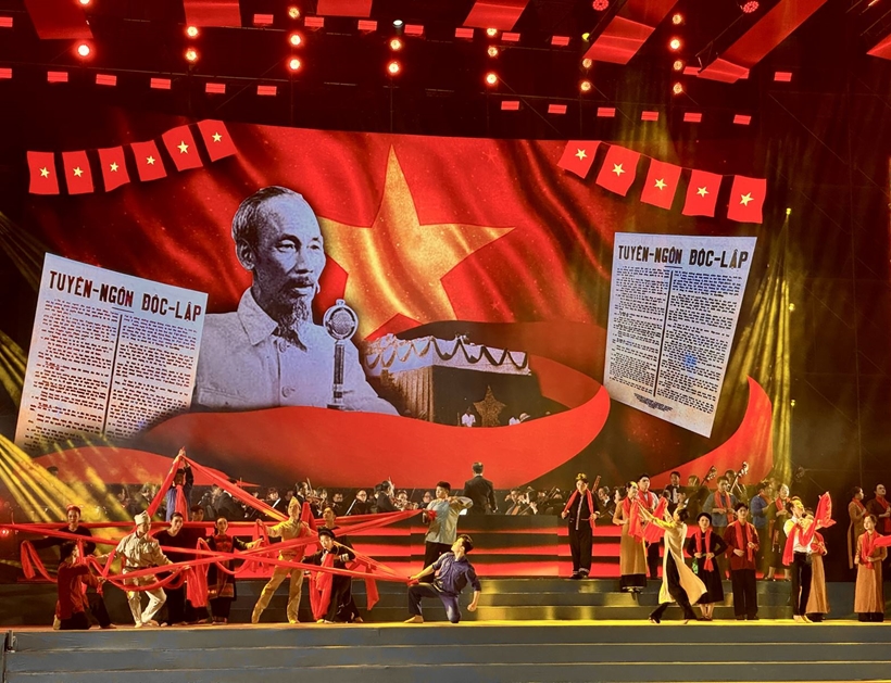 | Hình ảnh Bác Hồ đọc Tuyên ngôn độc lập được tái hiện sinh động trong chương trình. |