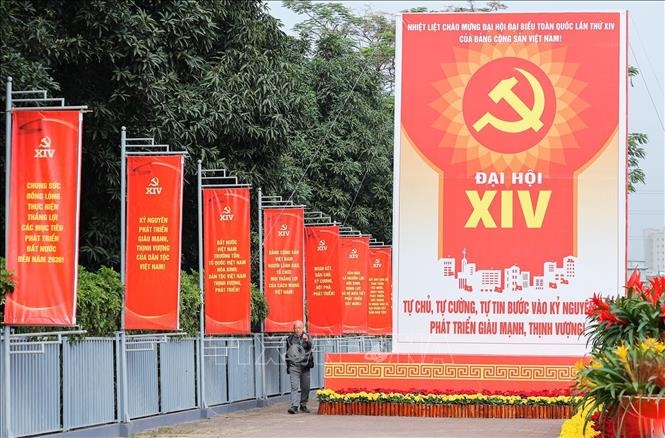 | Pano, khẩu hiệu rực đỏ trên các tuyến phố Thủ đô Hà Nội chào mừng Đại hội đại biểu toàn quốc lần thứ XIV của Đảng. Ảnh: Lê Đông/TTXVN |