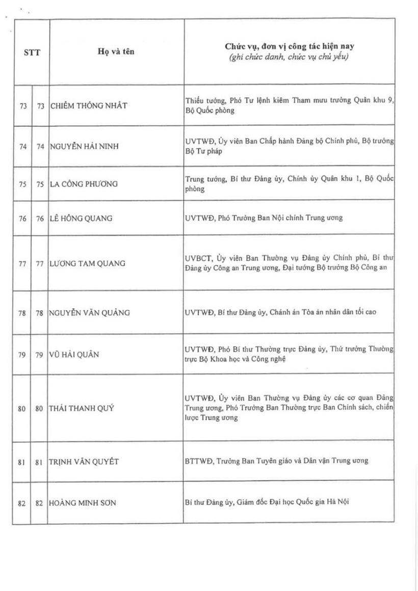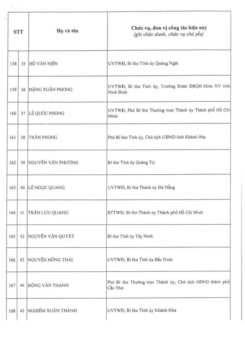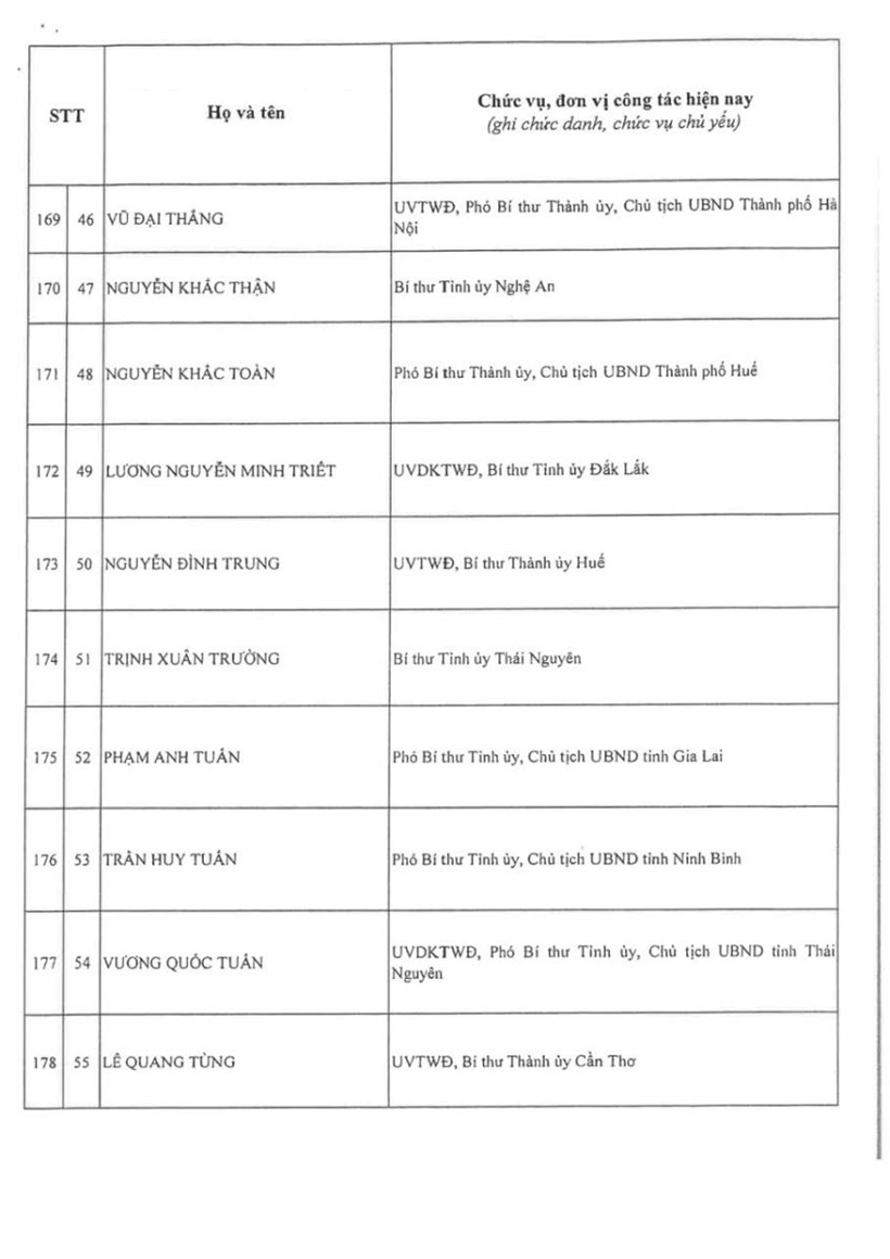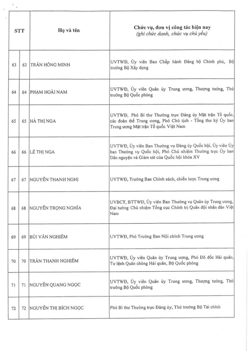 Danh sách 200 đồng chí Ủy viên Trung ương Đảng khóa XIV