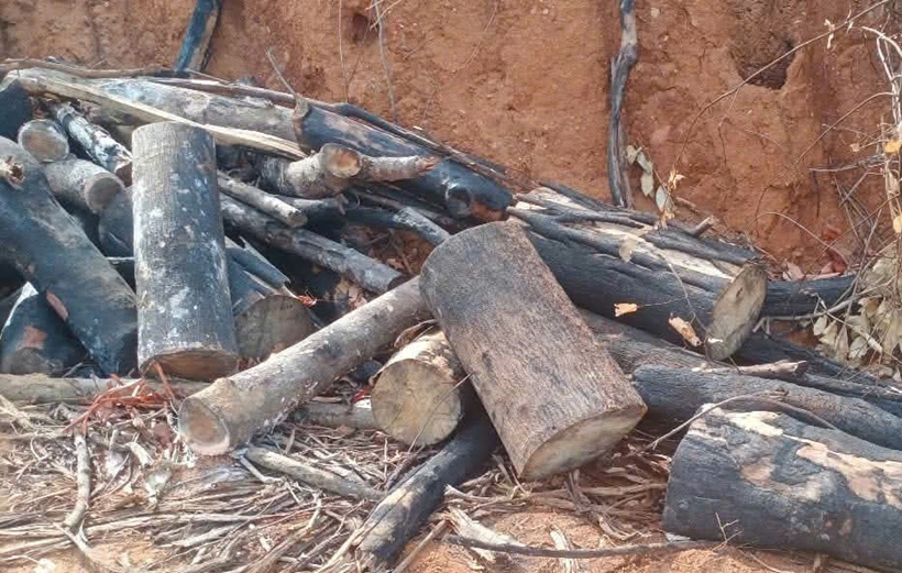 | Nhiều cây rừng bị cắt khúc, bỏ lại hiện trường. |