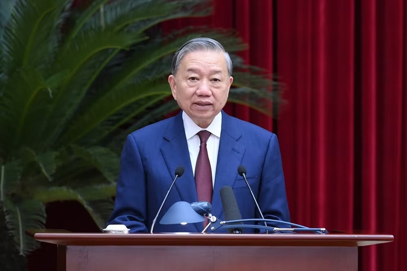 | Tổng Bí thư Tô Lâm phát biểu bế mạc Hội nghị lần thứ hai Ban Chấp hành Trung ương Đảng khóa XIV. (Ảnh: Báo Nhân dân) |