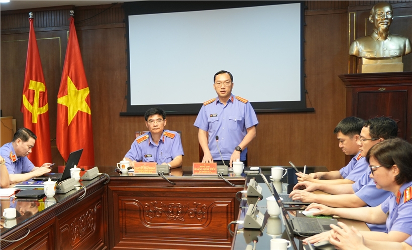 Cục Thống kê tội phạm và Chuyển đổi số (Cục 2) VKSND tối cao vừa tổ chức cuộc họp phổ biến, quán triệt thực hiện nội dung chấm điểm KPI gắn với triển khai nền tảng quản lý công việc. Đồng chí Nguyễn Thanh Hải, Vụ trưởng Vụ 15 và đồng chí Hoàng Minh Tiến, Cục trưởng Cục 2 VKSND tối cao đồng chủ trì cuộc họp.