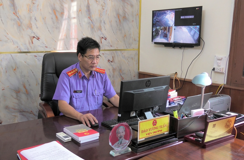 | Đồng chí Đào Vương Tuấn – Viện trưởng VKSND khu vực 15 duyệt báo cáo đề xuất trên nền tảng QLAHS. |