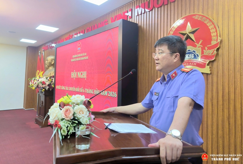 VKSND TP Huế vừa tổ chức hội nghị sơ kết công tác chuyển đổi số 6 tháng đầu năm 2026 nhằm đánh giá toàn diện kết quả triển khai tại hai cấp kiểm sát, đồng thời đề ra phương hướng, nhiệm vụ trọng tâm 6 tháng cuối năm.