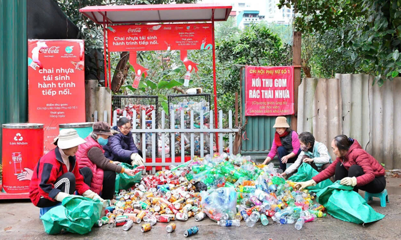 | Các hội viên phụ nữ tích cực thu gom phế liệu, duy trì hoạt động gây quỹ từ rác thải nhựa. |