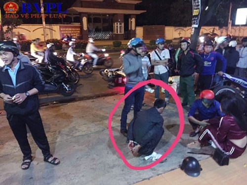 Thấy vậy, Cường liền áp sát để tìm cách giật túi xách chị Huyền đang đeo trên người, nhưng bị nạn nhân giằng co khiến cả hai ngã xuống đường. Được biết, bên trong túi xách của chị Huyền có 1 điện thoại Iphone 8 Plus và 400.000 đồng. Lúc này, Cường tìm cách bỏ chạy thì bị người dân truy bắt giao công an.