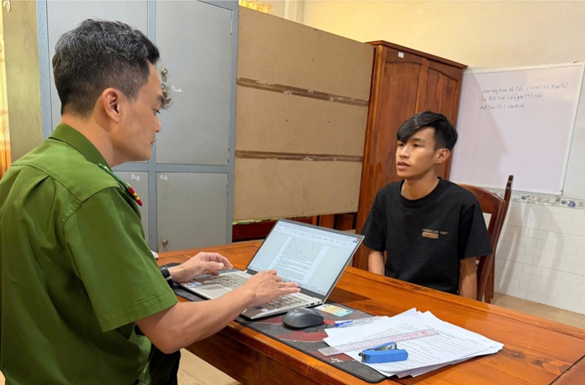 Đối tượng Nguyễn Quốc Huy tại cơ quan Công an. (Ảnh: CA).