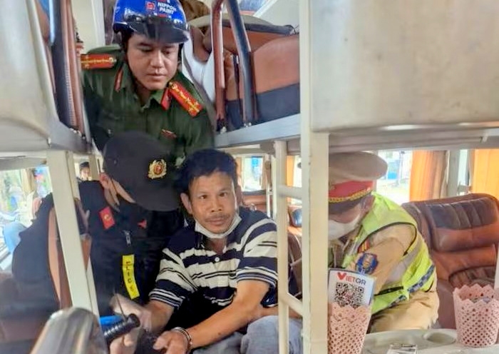 | Nghi phạm bị bắt giữ khi đang đi xe khách để lẩn trốn. |