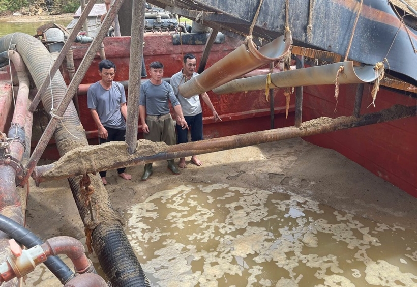 Tại thời điểm phát hiện và kiểm tra, xác định khối lượng khai thác cát trái phép được hút lên thuyền là khoảng 16m3.