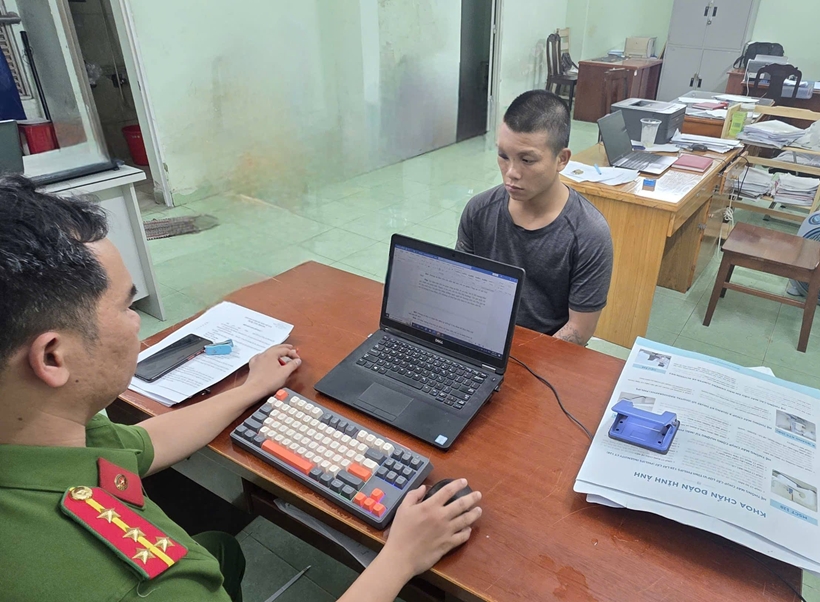 | Công an lấy lời khai ban đầu đối với Nguyễn Khắc Phi. |