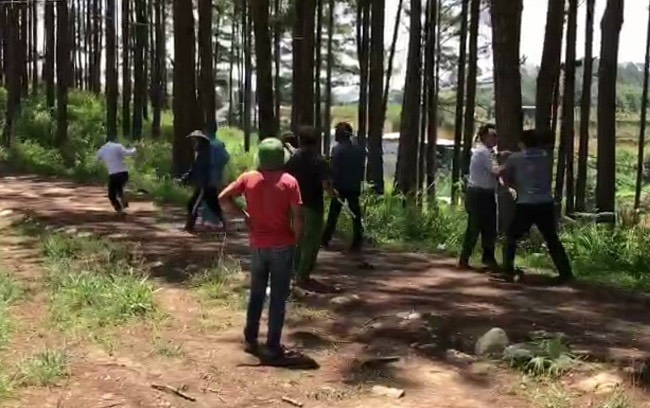 | Hiện trường các đối tượng có hành vi lấn chiếm đất rừng, chống người thi hành công vụ. |