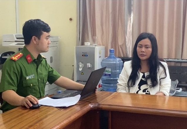 | Công an làm việc với người phụ nữ giả danh cán bộ Thanh tra Chính phủ. |