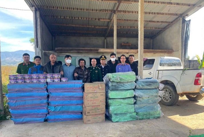 Tại hiện trường, lực lượng chức năng thu giữ 1.290 hộp pháo hoa nghi là pháo nổ loại 49 ống với tổng trọng lượng ước tính hơn 2 tấn. Các đối tượng không xuất trình được giấy tờ chứng minh nguồn gốc hợp pháp của số hàng hóa này.