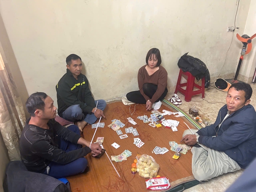 Tại thời điểm kiểm tra, các đối tượng đang đánh “phỏm” được thua bằng tiền mặt. Lực lượng Công an thu giữ tại chiếu bạc 1 bộ bài tú lơ khơ, 7,27 triệu đồng tiền mặt cùng 4 điện thoại di động.