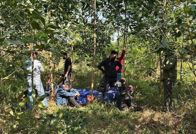 | Công an bắt quả tang 8 đối tượng đánh bạc trong vườn keo. |