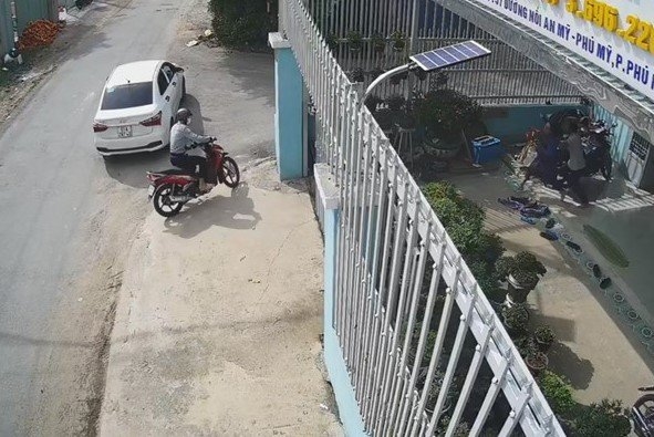 Theo camera ghi lại, chiếc xe ôtô con màu trắng nhãn hiệu Huyndai I-10 biển số 61A-287.40 đi tới trước cửa công ty của anh H. rồi dừng lại. Một thanh niên đội nón bảo hiểm từ trên xe bước xuống, sau đó đột nhập vào công ty trộm chiếc xe máy.
