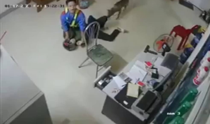 Bị tên cướp dùng dao kề cổ và đâm vào lưng, nhân viên cây xăng đã nhanh chóng né tránh và khống chế được tên cướp hung hãn sau một hồi vật lộn.