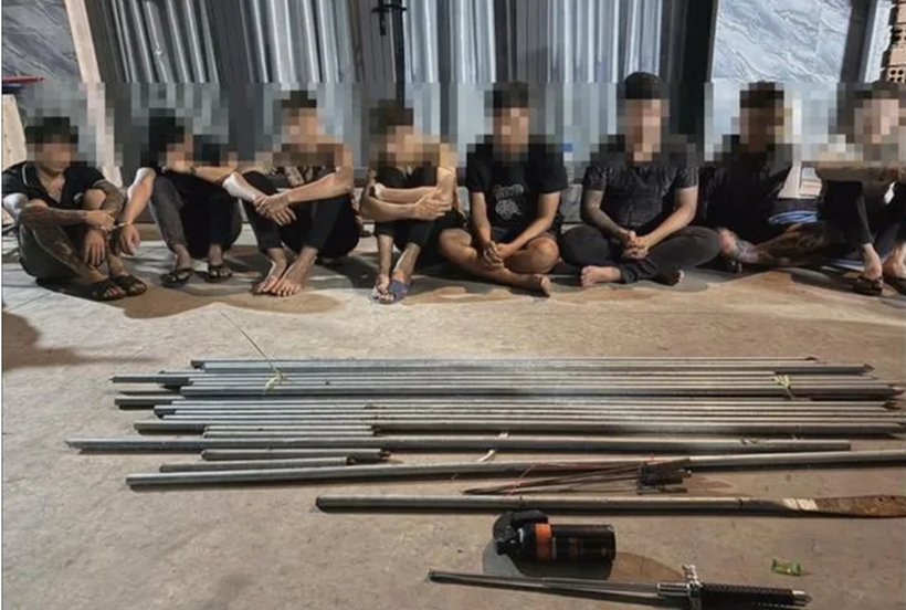 | Nhóm đối tượng và hung khí bị phát hiện tại thành phố Biên Hòa. |