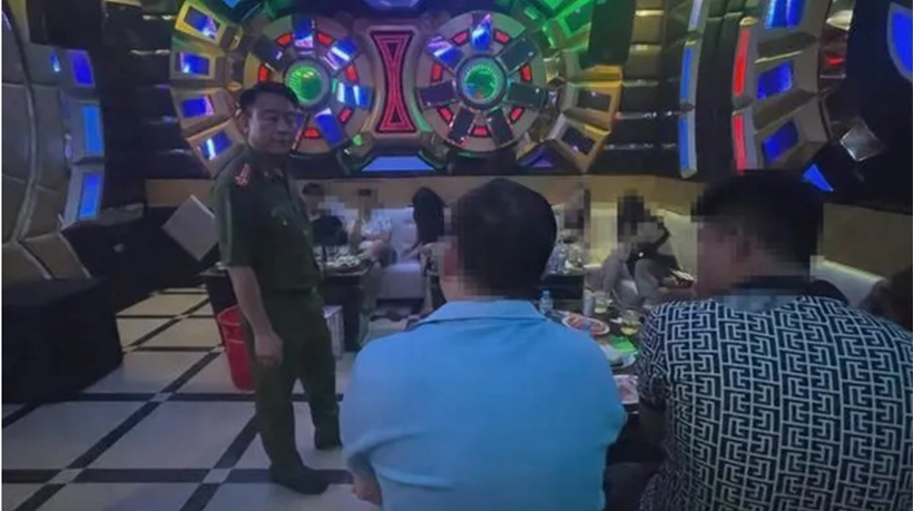 | Lực lượng Công an kiểm tra một quán karaoke tại huyện Long Thành. |