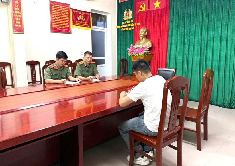 | Công an tỉnh Hà Nam làm việc với nam thanh niên bình luận chia rẽ vùng, miền trên mạng. Ảnh: CA Hà Nam. |