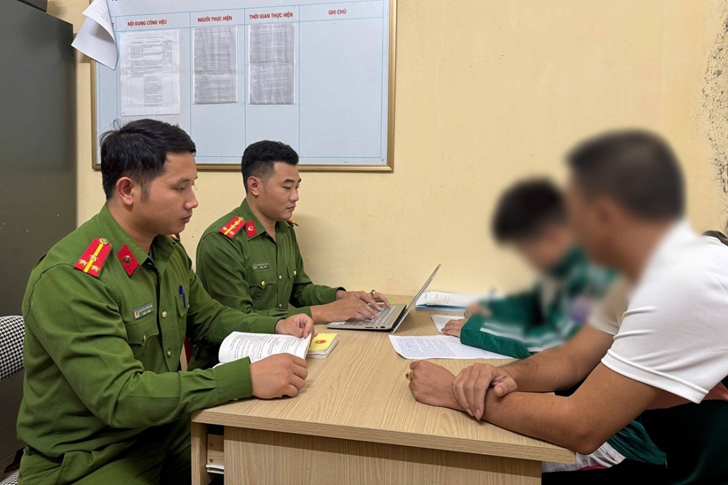 | Cơ quan điều tra làm việc với em V.T.Đ. Ảnh: CA Lào Cai. |