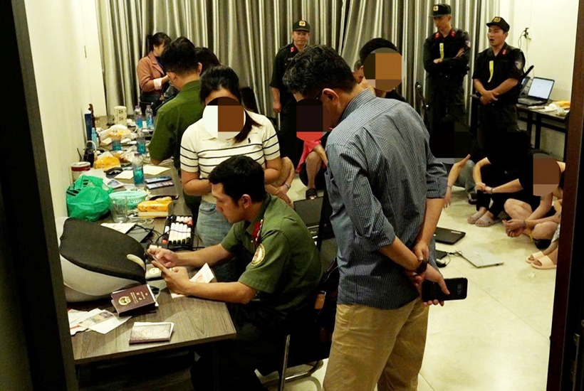 Lực lượng chức năng Công an tỉnh Khánh Hòa đã lập biên bản tạm giữ 40 máy tính, 112 điện thoại di động các loại, đồng thời đưa 30 đối tượng có quốc tịch Trung Quốc và 1 đối tượng người Việt Nam về trụ sở làm việc.