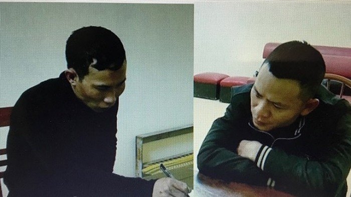 | Hai đối tượng Lộc và Lâm tại cơ quan Công an. Ảnh CANB |