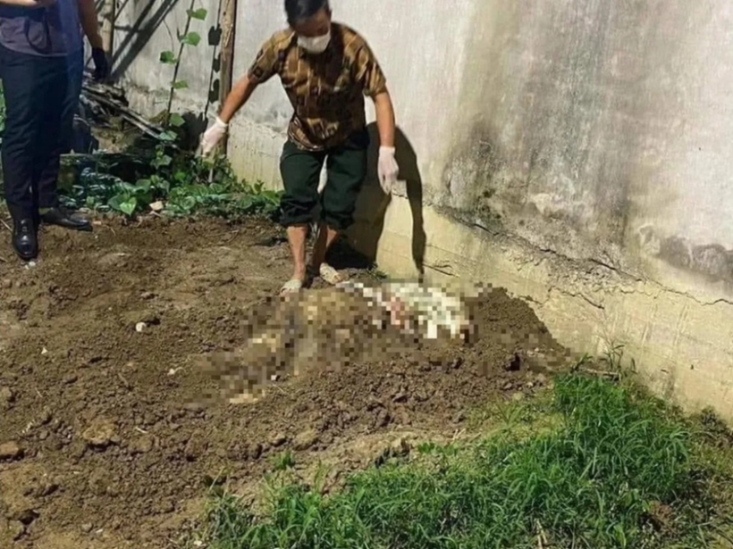 Tại đây, bước đầu, T. khai nhận, ngày 12/4, tại nhà riêng ở thôn Lê Sáng, T. đã xảy ra tranh cãi với D. Lúc đó, T. đánh ngất D. sau đó siết cổ nạn nhân rồi kéo ra vườn chuối trong nhà chôn.
