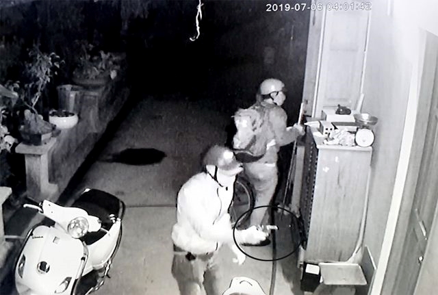 | Các đối tượng đột nhập nhà dân. (Ảnh cắt camera) |