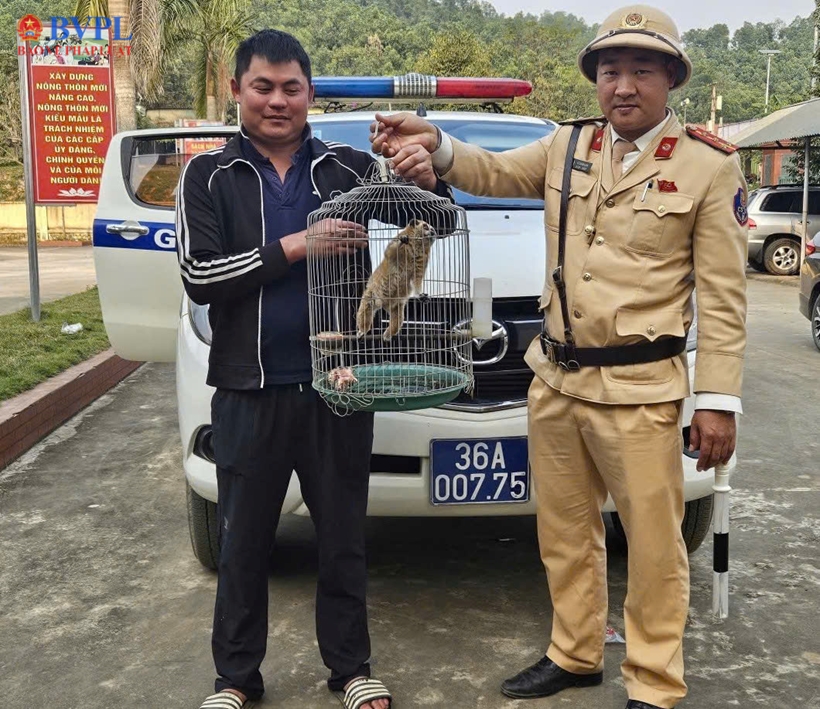 Sáng 14/1/2026, thông tin từ Phòng Cảnh sát giao thông (Công an tỉnh Thanh Hoá) cho biết, vào hồi 11h ngày 13/1/2026, tại km 23+500 tỉnh lộ 505B (địa phận thôn Cây Nghĩa, xã Xuân Thái, tỉnh Thanh Hoá), tổ công tác tuần tra, kiểm soát thuộc Đội Cảnh sát giao thông đường bộ số 2 (Phòng Cảnh sát giao thông) tiếp nhận 01 cá thể Cu li, loại động vật quý hiếm do anh Bùi Văn Chiến, thôn Ấp Cũ, xã Xuân Thái bắt được và mang bàn giao cho tổ công tác.