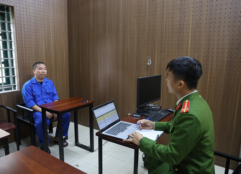 | Điều tra viên lấy lời khai đối tượng Nguyễn Hải Chiều |