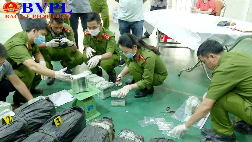 Kiểm tra trên xe, tổ công tác phát hiện có 8 bao tải giấu trong cốp xe và băng ghế sau. Trong mỗi bao tải có 25 gói ma tuý đá. Tổng trọng lượng tang vật ma túy đá là 200kg.