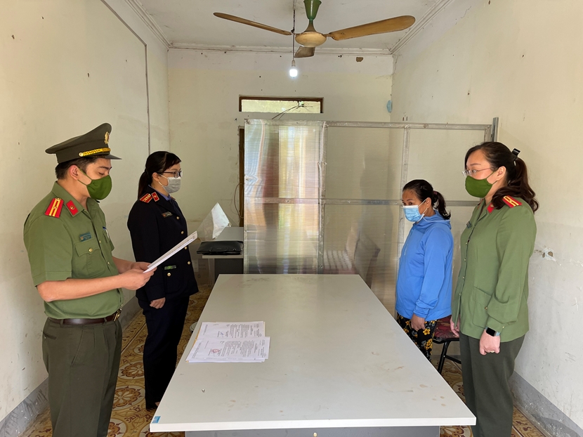 | Cơ quan An ninh điều tra Công an tỉnh Sơn La đọc Quyết định khởi tố bị can đối với Nguyễn Thị Thảo. |