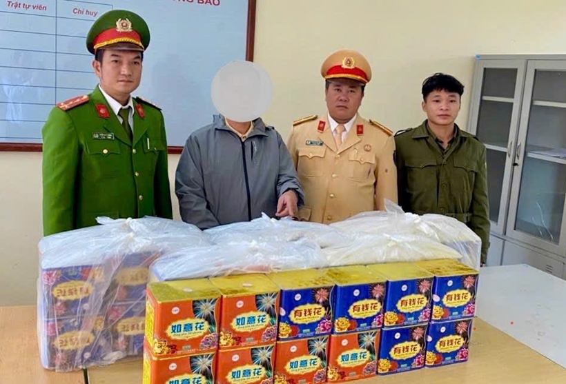 Tuy nhiên, bằng các biện pháp nghiệp vụ, lực lượng chức năng xác định người điều khiển xe có dấu hiệu dừng đỗ bất thường khoảng 15 phút tại khu vực dốc Toòng Tạo, thôn Bắc Lù, xã Điền Xá. Tổ công tác đã đưa N.V.T quay lại vị trí này để kiểm tra, qua đó phát hiện 10 túi nilon màu đen để tại hiện trường; mỗi túi chứa 6 hộp pháo có nhãn mác chữ nước ngoài. Tổng trọng lượng số pháo thu giữ là 92kg.
