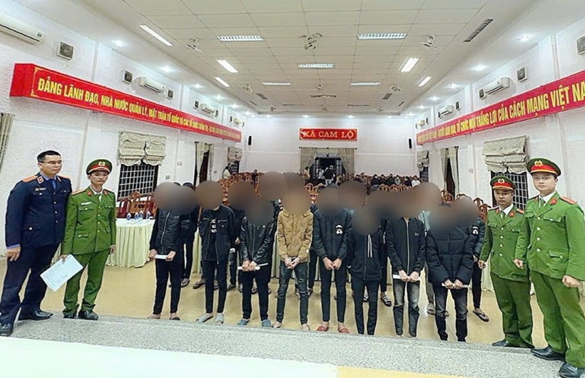 Căn cứ tài liệu, chứng cứ thu thập được, Cơ quan CSĐT Công an tỉnh Quảng Trị đã khởi tố 2 bị can Lê Bảo Thiên (SN 2009) và Võ Nhật Tân (SN 2005) về các tội “Gây rối trật tự công cộng” (điểm b, khoản 2, Điều 318 BLHS) và “Sử dụng trái phép vũ khí quân dụng” (khoản 1, Điều 304 BLHS); 7 bị can khác gồm: Võ Văn Nam (SN 2004), Nguyễn Trung Kỳ (SN 2004), Nguyễn Hữu Nghĩa (SN 2007), Nguyễn Lâm Bảo (SN 2008), Nguyễn Văn Tuấn (SN 2008), Lê Văn Từ (SN 2006) và Hoàng Chí Tường (SN 2009) bị khởi tố về tội “Gây rối trật tự công cộng”.