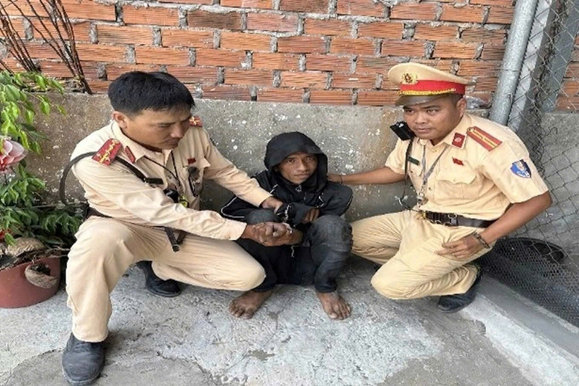 | Lê Văn Cò bị lực lượng CSGT khống chế bắt giữ. |
