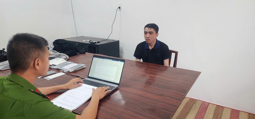 | Đối tượng Trần Nhứt Phi tại Cơ quan điều tra. (Ảnh:CA) |