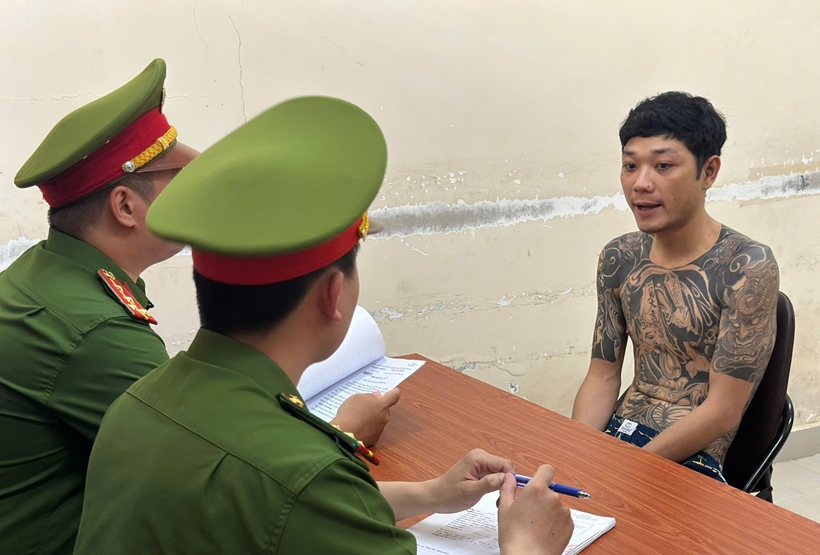 | Cán bộ điều tra lấy lời khai đối với Hoàng Phi Long. |