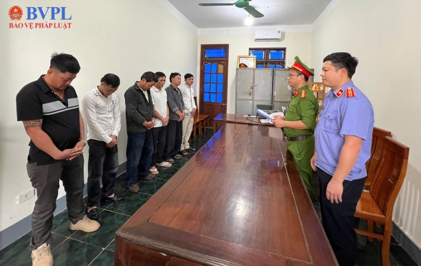 Các đối tượng bị khởi tố gồm: Bạch Văn Hùng (sinh năm 1982), trú tại thôn Thái Sơn; Phan Văn Đông (sinh năm 1974), trú tại thôn Hương Long; Võ Hồng Khuông (sinh năm 1973), trú tại thôn Thái Sơn; Ngô Đăng Tâm (sinh năm 1993), trú tại thôn Trung Hà; Phan Văn Thắng (sinh năm 1983), trú tại thôn 10; Trần Văn Hùng (sinh năm 1987), trú tại thôn Thái Sơn và Trần Nam Thảo (sinh năm 1989), trú tại thôn Thượng Bình, cùng thuộc xã Hương Khê, tỉnh Hà Tĩnh.